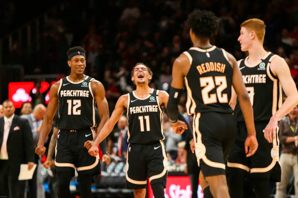 Photo by Icon Sport - Cam REDDISH - Trae YOUNG - De'Andre HUNTER - Kevin HUERTER - State Farm Arena - Atlanta (Etats Unis)