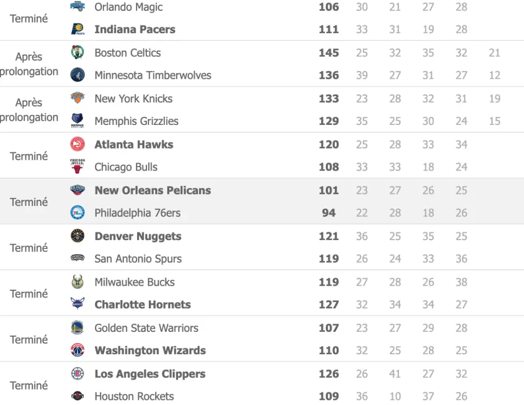 Voici les résultats de la nuit en NBA.