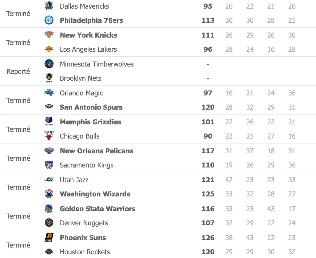 Voici les résultats de la nuit en NBA. Philadelphie, porté par Joel Embiid, s’est imposé à Dallas pour reprendre seul les commandes de la conférence Est. Dans le même temps, Utah, leader à l’Ouest, s’incline à domicile contre Washington. Étiquettes# NBA