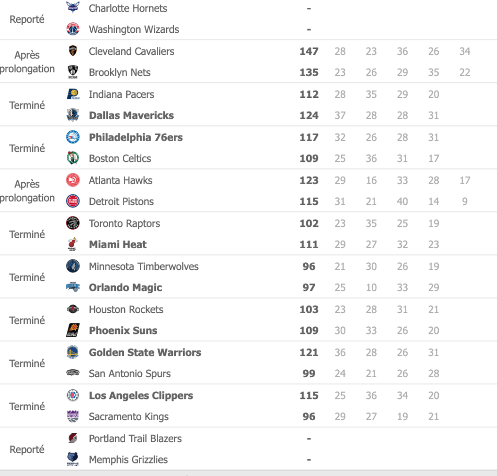 Voici les résultats de la nuit en NBA. Avec la victoire de Cleveland contre Brooklyn et la défaite de Toronto sur son parquet contre Miami. Pour leur première sous le même maillot, Kevin Durant (38 points, 12 rebonds), Kyrie Irving (37 points) et James Harden (21 points, 10 rebonds, 12 passes) étaient bien présents.