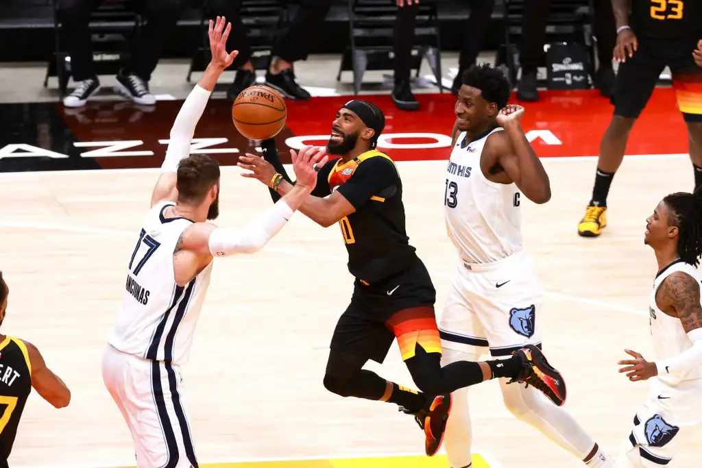 Utah Jazz – Memphis Grizzlies 120-113 : Sans trembler, la franchise de Salt Lake City l’emporte sur le score de 120 à 113 et s’envole dans la série en menant désormais 3 victoires à 0. Donovan Mitchell termine meilleur marqueur avec 30 points, 8 passes bien aidé par les 24 unités de Jordan Clarkson et la performance du pivot français Rudy Gobert qui compile 17 points pour 8 rebonds. En face, Memphis a tenté mais insuffisant avec 23 unités de Morant et 21 pour Brooks et Jaren Jackson Jr.