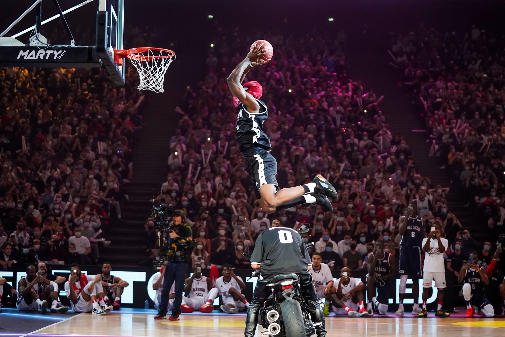 La soirée des concours s’est conclue en apothéose avec le concours de dunk à la mi-temps du match de gala. Un concours marqué par le dunk incroyable de Dylan Affo Mama qui explose le cercle avec un masque de Spider-Man en sautant par dessus une moto, rien que ça. Il se qualifie en finale du concours face à Allan Dokossi qui a enflammé la foule avec ses deux dunks et ses pas de danse endiablés. Malheureusement pour lui en finale il tente un dunk trop compliqué et s’incline face à Dylan Affo Mama qui l’emporte largement.