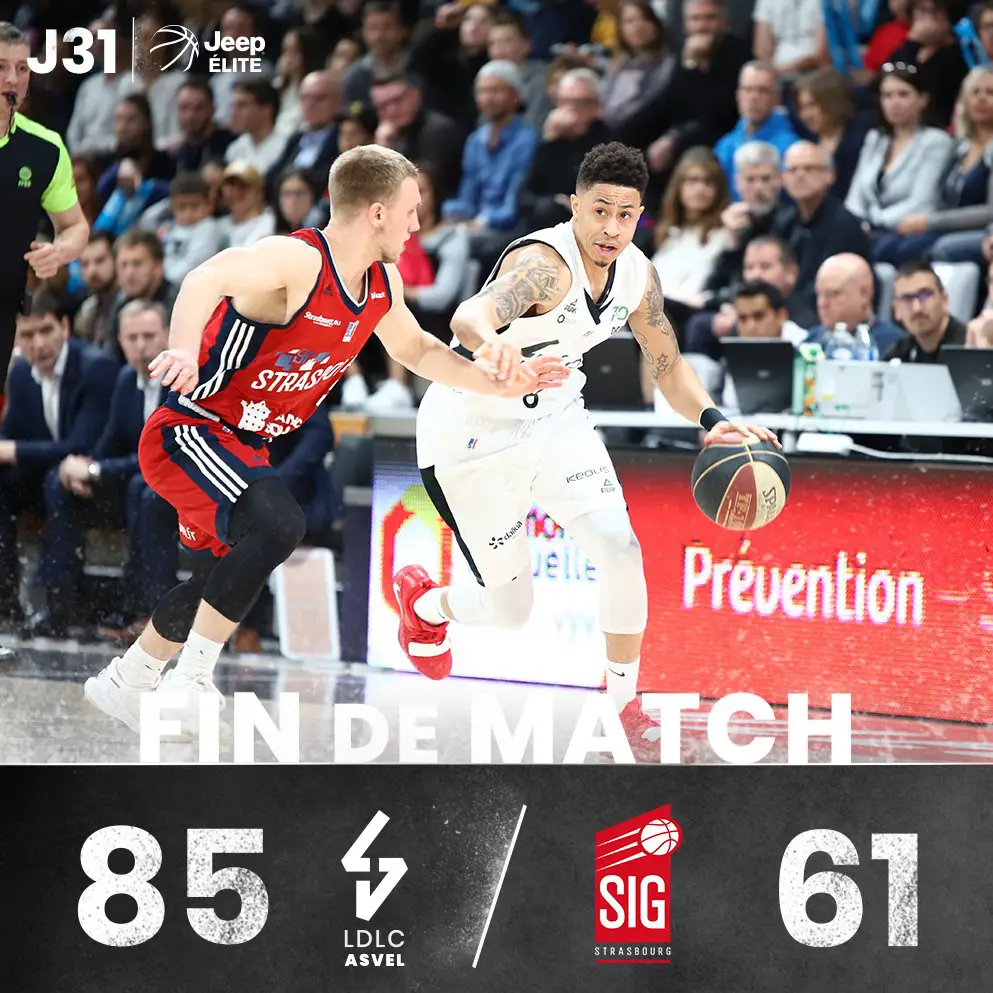 Villeurbanne a consolidé sa place de leader en s’imposant face à Strasbourg (85-61), dimanche à l’Astroballe, pour le compte de la 31e journée de Jeep Elite.