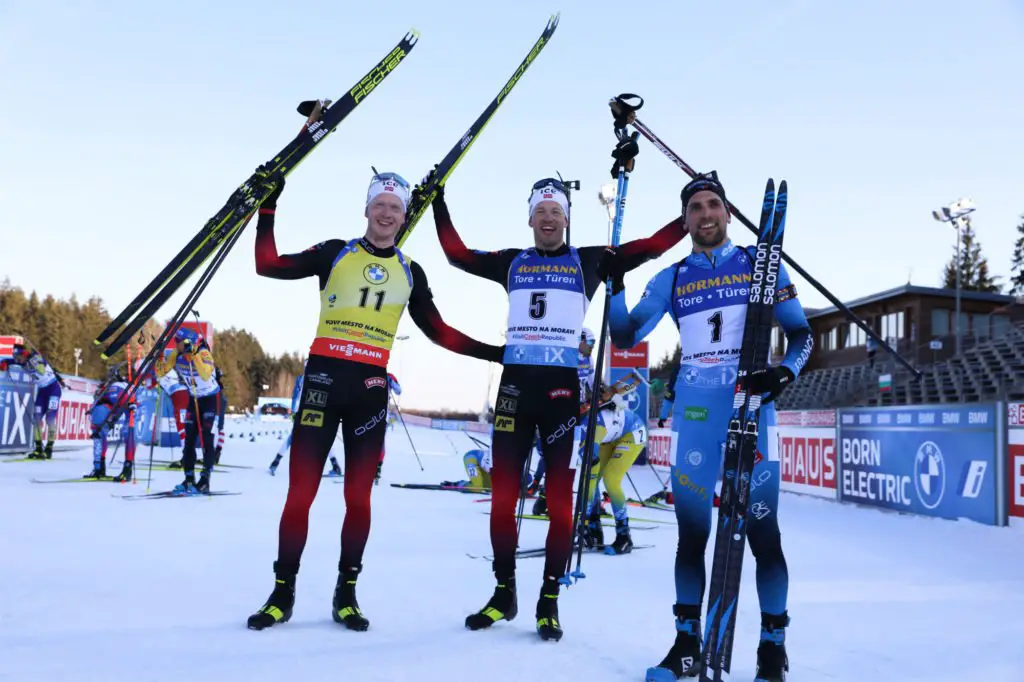 Côté français, le double champion du monde de poursuite, Emilien Jacquelin, termine 7e, juste derrière Quentin Fillon-Maillet, 4e du classement général.