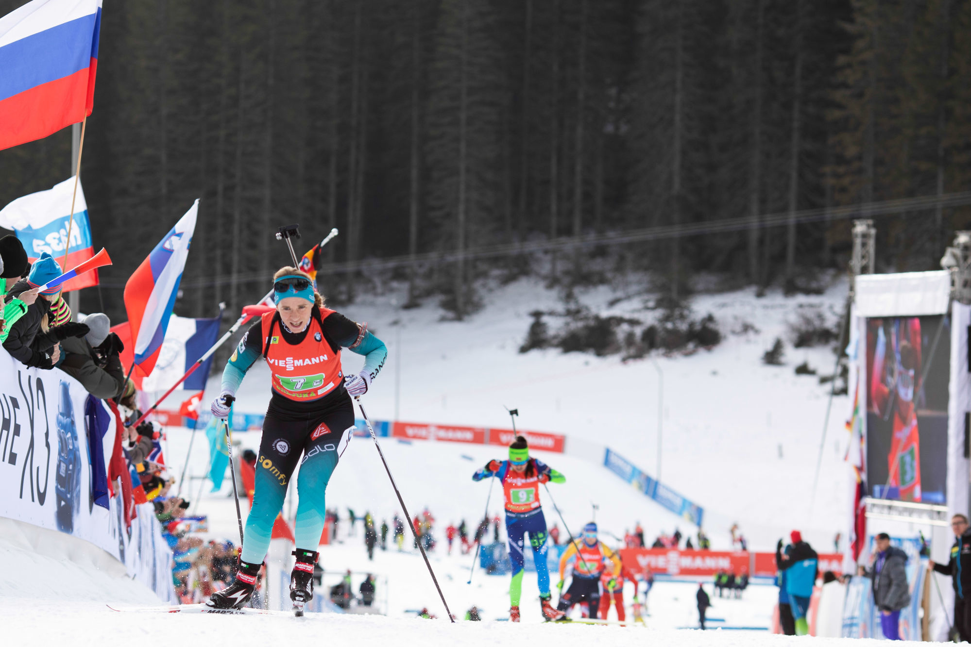 La France a terminé derrière la Norvège, qui s’offre un Grand Chelem, avec six succès sur six courses cette saison. L’Allemagne a pris la troisième place. « Je suis vraiment très contente, j’ai été très impressionnée par le relais de Chloé Chevalier » a déclaré Anaïs Bescond au micro de la Chaîne L’Equipe. « Je suis un peu frustrée parce que j’ai essayé d’engager mon tir debout (1 faute, ndlr) et de battre les autres mais je suis tombée sur plus forte que moi. Cela reste toutefois un joli résultat pour l’équipe et ça fait vraiment du bien. »