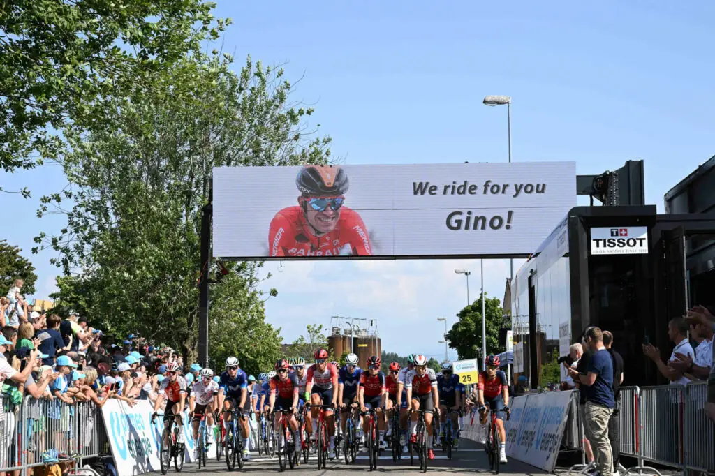 Les organisateurs du Tour de Suisse ont annoncé vendredi soir, quelques heures après la mort du coureur helvète Gino Mäder, que la course irait jusqu’à son terme dimanche. Une décision prise en accord avec la famille du coureur suisse. En revanche, l’équipe Bahrain-Victorious se retire de son côté après l’hommage rendu hier lors d’une étape à l’intensité émotionnelle particulièrement forte.