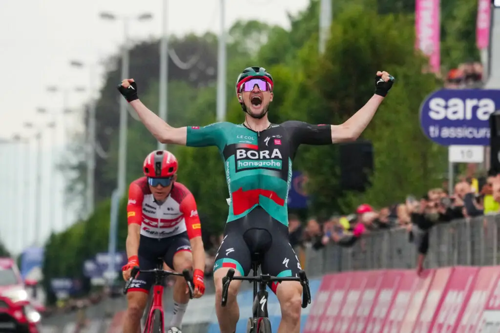 Nouvelle victoire pour l’Allemand de l’équipe Bora qui s’impose une fois de plus quelques jours après sa belle victoire sur les routes italiennes. Denz remet donc ça avec un nouveau succès ce samedi au terme d’une échappée sous une pluie battante. Une victoire à la photo finish pour Denze qui devance le Canadien