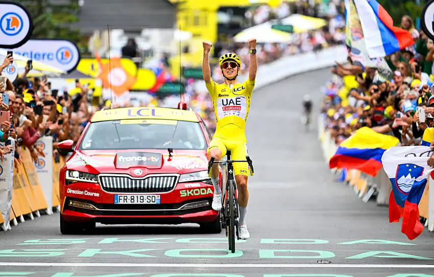 Richard Carapaz aura chipé le maillot à poids à Tadej Pogacar ce vendredi, mais le Slovène a assuré son troisième sacre sur la Grande Boucle. L’attaque de l’Américain Matteo Jorgenson aura finalement été une rampe de lancement pour la fusée Pogacar, qui termine en solitaire au sommet de la station Isola 2000 et s’offre une 4e victoire d’étape sur ce Tour de France. Il prend ainsi plus de 5 minutes d’avance au général sur la doublette Vingegaard-Evenepoel, et devrait – sauf catastrophe – signer un immense doublé Tour d’Italie (Giro) – Tour de France.
