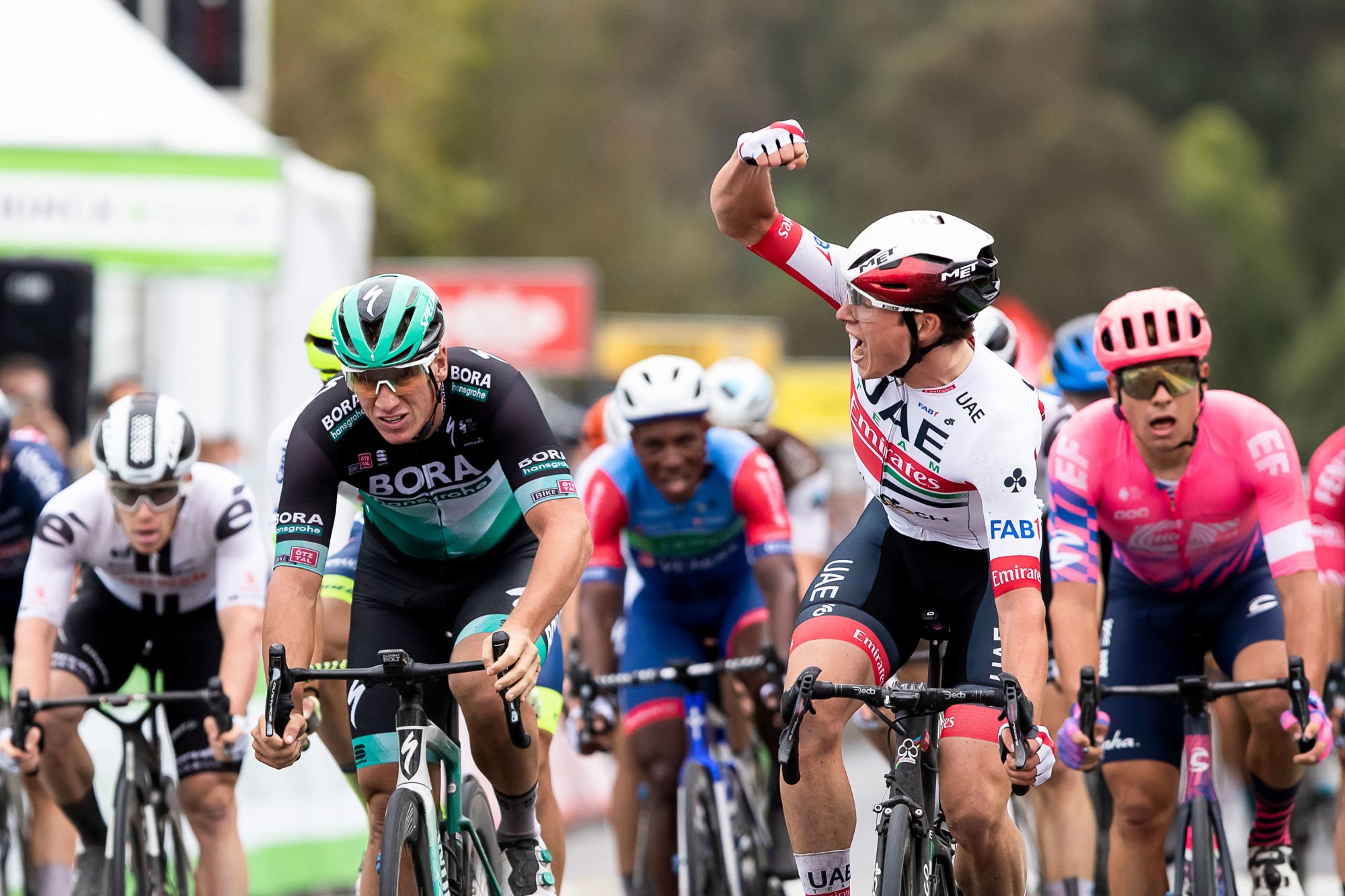 Dans la cinquième et dernière ascension du jour, l’Italien Mattia Cattaneo a distancé ses onze compagnons (Aranburu, L. L. Sanchez, Costa, Donovan, Power, Rojas, Schultz, Stannard, G. Martin, Simon, Lastra) à 32 kilomètres de l’arrivée. Mais Cattaneo, qui visait le 100e succès dans un grand tour pour l’équipe de Patrick Lefevere (Deceuninck Quick-Step), a buté sur le fort vent de face dans le final. Il a été rejoint à l’approche des trois derniers kilomètres par le peloton souvent mené par l’équipe Bora travaillant pour l’Allemand Pascal Ackermann.