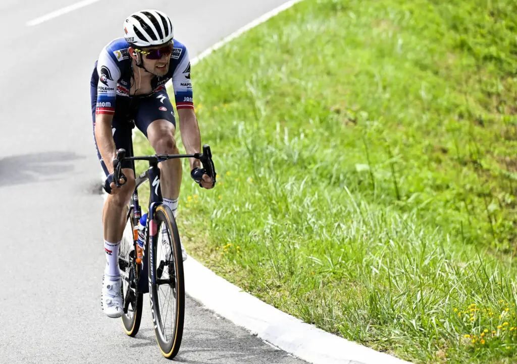 Danish Kasper Asgreen of Soudal Quick-Step pictured in action during stage 8 of the Tour de France cycling race, a 200.7 km race from Libourne to Limoges , France, Saturday 08 July 2023. This year's Tour de France takes place from 01 to 23 July 2023. BELGA PHOTO DIRK WAEM - Photo by Icon sport