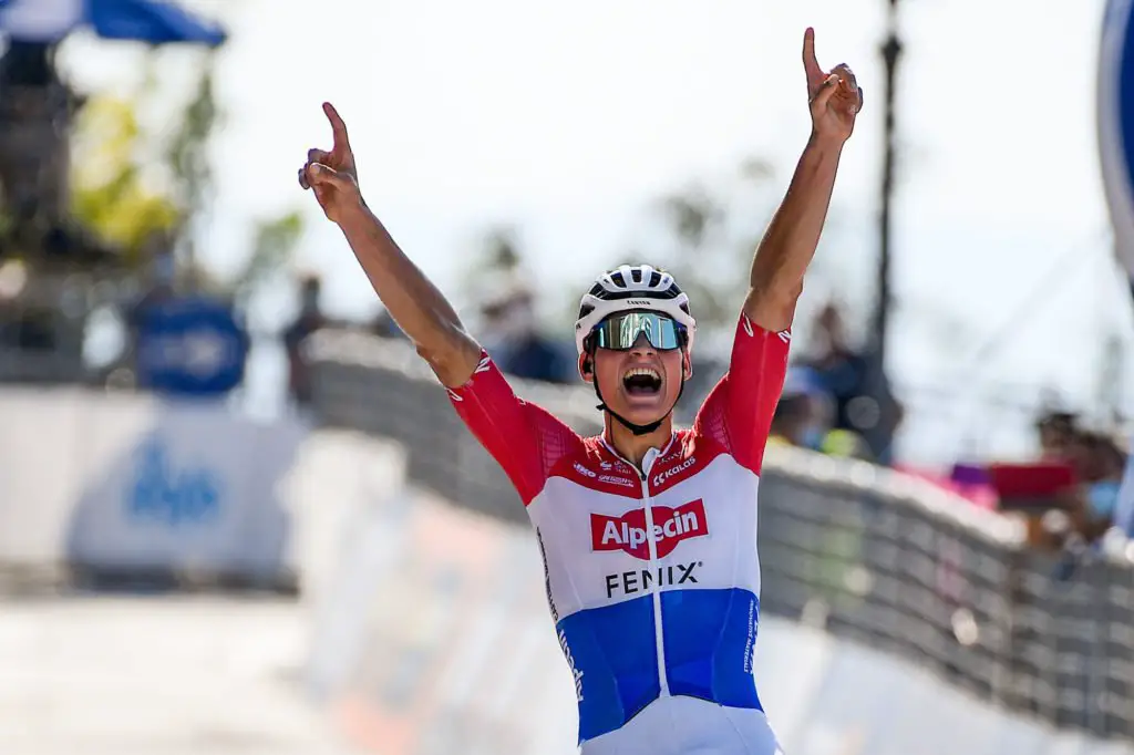 Les deux hommes se sont échappés en compagnie du champion du monde français Julian Alaphilippe, qui hélas n’a pu défendre ses chances pour la victoire après une lourde chute, après avoir percuté une moto de l’organisation. Mathieu van der Poel s’est finalement imposé, marchant sur les traces de son père Adrie qui avait remporté « la Ronde » 34 ans plus tôt.