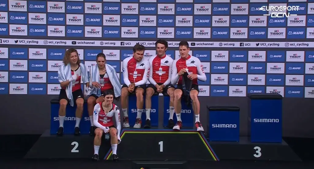 Composée de Nicole Koller, Marlen Reusser, Elise Chabbey, Stefan Bissegger, Stefan Küng et Mauro Schmid, l’équipe suisse s’est imposée devant l’Italie et l’Australie pour succéder à l’Allemagne.