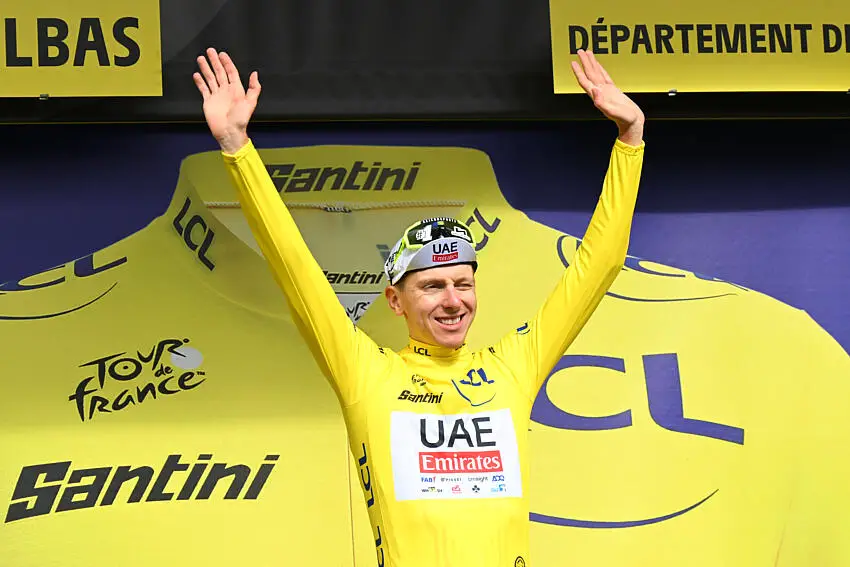 De passage au micro de France TV le leader du Tour de France, Tadej Pogacar, semble satisfait de son contre-la-montre.