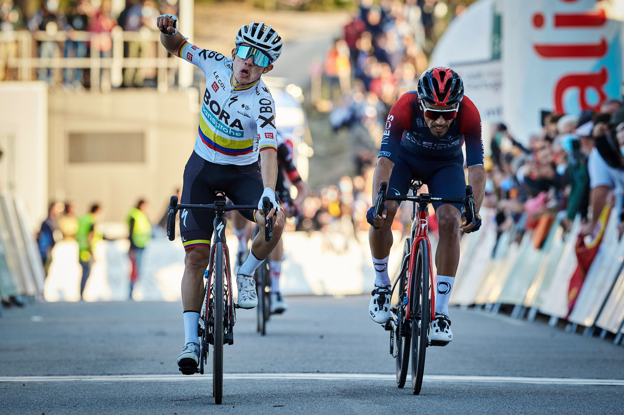 Coureur de l’équipe Bora-Hansgrohe, Higuita termine au sprint devant son coéquipier et offre un doublé à l’équipe Bora. Derrière Higuita, Vlasov a devancé Juan Ayuso (UAE-Team Emirates), tandis que le français Thibaut Pinot a pris le cinquième place de l’épreuve reine du jour. Malgré sa victoire, Higuita laisse le maillot de leader à Rohan Dennis qui se trouve le mieux placé pour l’emporter avant la dernière étape du contre-de-la-montre ce dimanche. Dennis s’élancera avec 15 secondes d’avance sur son dauphin au classement Juan Ayuso.