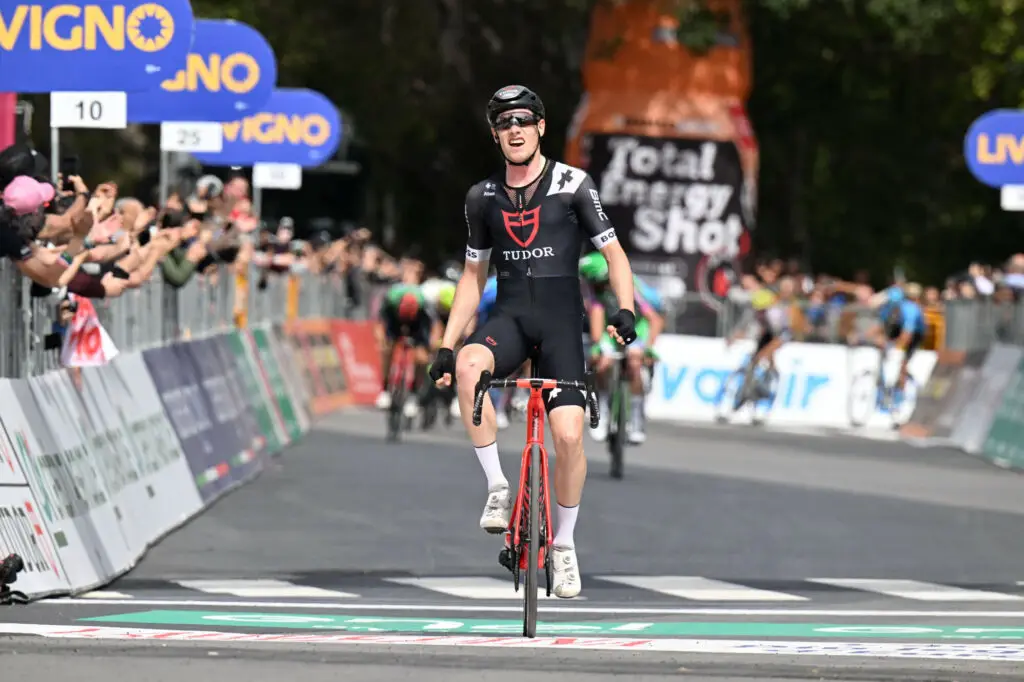 Suter (Tudor) a faussé compagnie à ses cinq compagnons d’échappée à 15 kilomètres de l’arrivée, jugée à Termini Imerese, sur la côte nord de la Sicile, alors que le peloton revenait fort. L’Helvète de 24 ans a résisté en solitaire jusqu’à la ligne franchie avec quatre secondes d’avance sur les Italiens Filippo Fiorelli et Elia Viviani. « J’ai décidé de partir quand j’ai vu qu’il ne restait plus qu’une minute d’avance sur le peloton, et ça a fonctionné », s’est réjoui le vainqueur d’étape, qui remporte sa première victoire en ligne chez les professionnels après le titre de champion de Suisse du chronomètre en juin 2022.