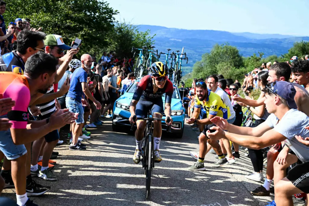 Décroché au général, le leader d’Ineos a placé une attaque décisive à deux kilomètres de l’arrivée au sein du groupe de tête pour l’emporter en solitaire avec huit secondes d’avance sur le Néerlandais Wilco Kelderman (Bora) et 25 sur l’Espagnol Marc Soler (UAE). Le champion olympique à Tokyo et vainqueur du Giro 2019 lève les bras pour la première fois de sa carrière sur la boucle espagnole.
