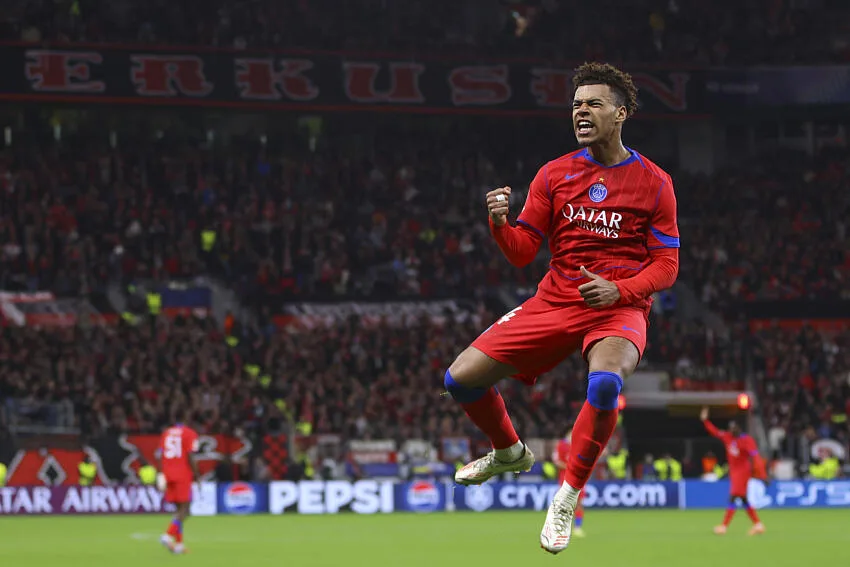 Après des victoires contre l’Atalanta Bergame (4-0) et le FC Barcelone (2-1), le Paris Saint-Germain visait le sans-faute ce mardi sur la pelouse du Bayer Leverkusen. Attendus au tournant, les champions d’Europe en titre n’auront eu besoin que de sept minutes de jeu pour confirmer leur statut de favori. Esseulé dans la surface et trouvé sur un très bon centre de Nuno Mendes, c’est Willian Pacho qui a rapidement donné l’avantage aux Parisiens.
