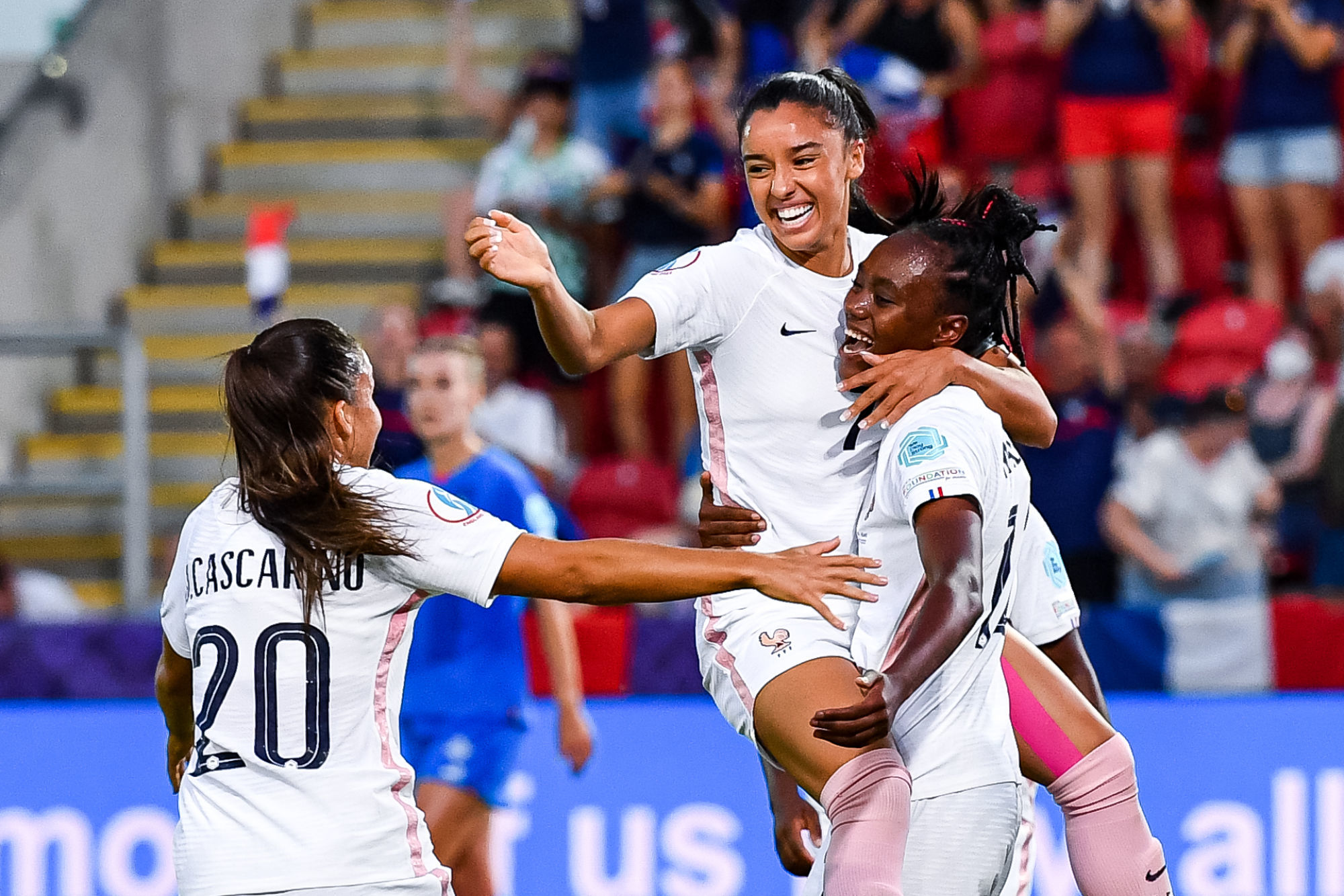 Déjà qualifiées pour les quarts de finale de l’Euro, les joueuses de l’équipe de France ont rapidement pris les commandes de ce dernier match de poules grâce au but express de Melvine Malard (1′). Elles auront dominé la rencontre, touchant à deux reprises les montants et inscrivant deux nouveaux buts refusés par la VAR, sans réussir à enfoncer le clou. En fin de rencontre, l’Islande est même parvenu à égaliser grâce à un penalty transformé par Dagný Brynjarsdóttir (90’+12). Ce match nul (1-1) n’empêche pas les Bleues de filer jusqu’en quarts de finale de l’Euro où elles retrouveront les Pays-Bas.