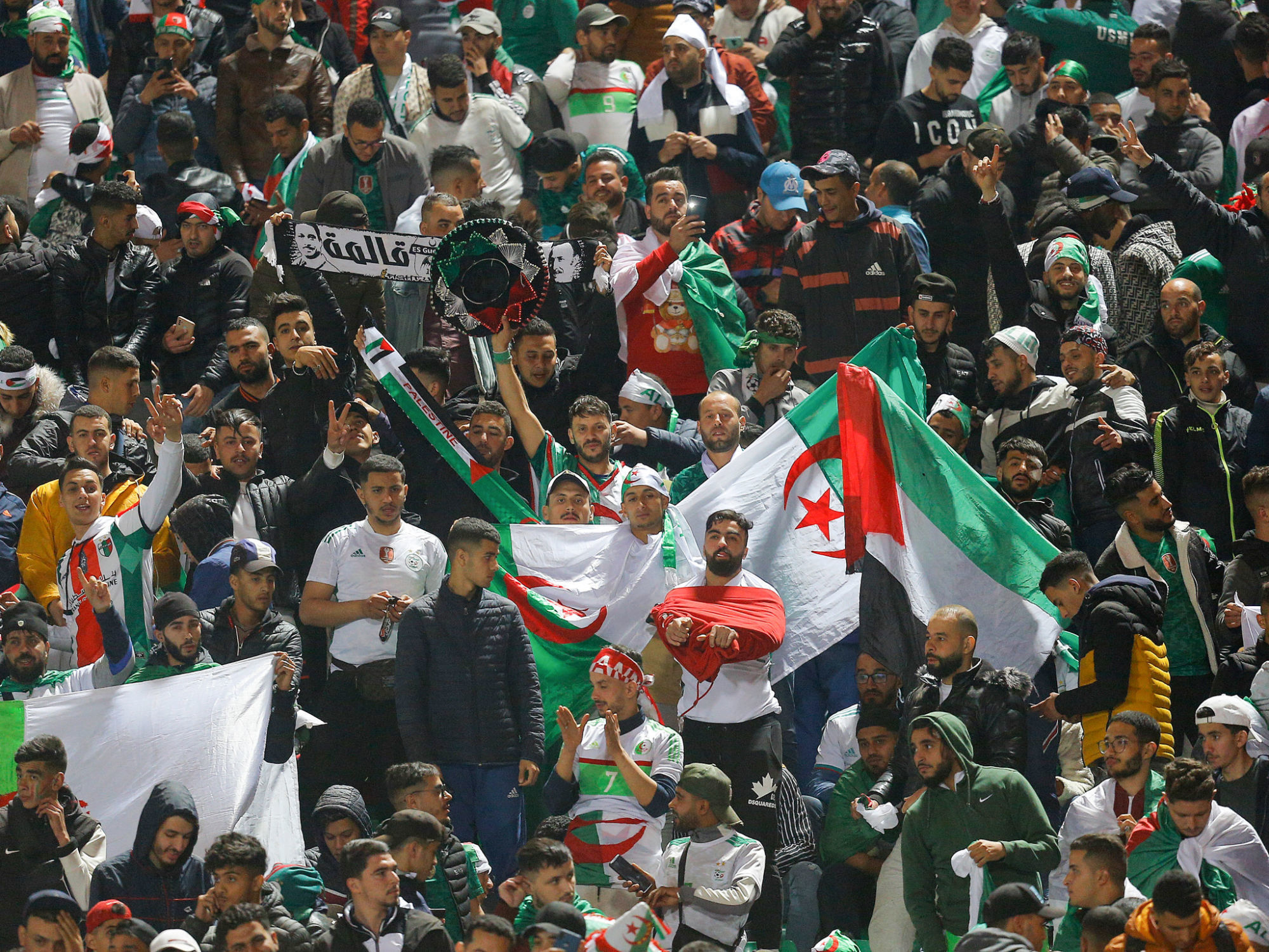 Certain supporters algériens n’ont toujours pas accepté l’élimination de leur pays face au Cameroun aux portes de la Coupe du Monde. Aujourd’hui, plus d’un mois après la défaite, de nombreux supporteurs des Fennecs ont manifesté au siège de la FIFA à Zurich. Pour rappel, l’arbitre gambien Bakary Gassama est tenu pour responsable par les Algériens de l’élimination de leur pays suite à des décisions litigieuses lors de la rencontre.