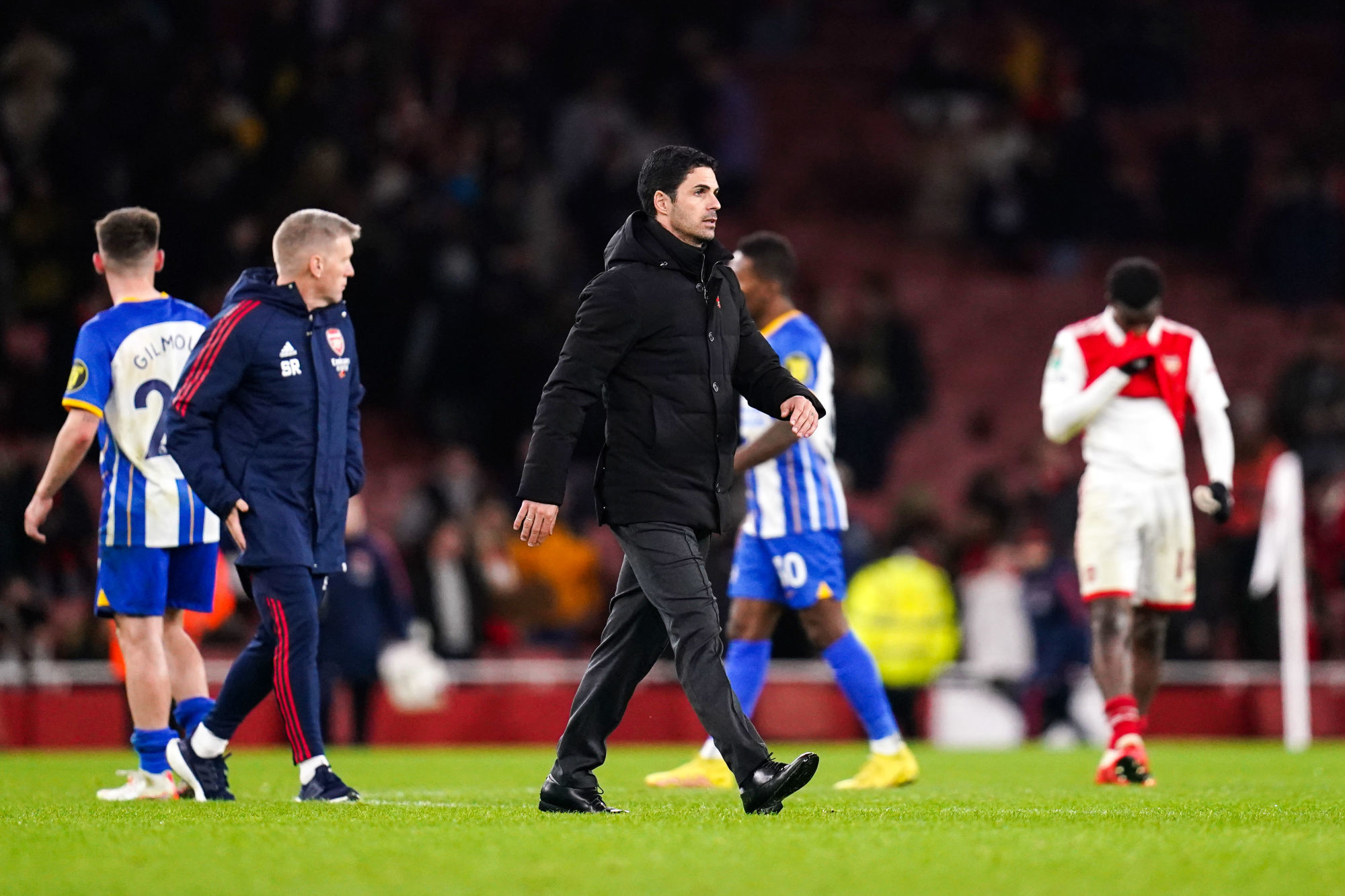 Actuellement leader de Premier League devant le monstre Manchester City, Arsenal n’aura pas passé le stade des 16es de finale de la Carabao Cup. Avec une équipe largement remaniée, les Gunners se sont incliné 3-1 face à Brighton. Un faux pas qui ne semble pas inquiéter pour autant Mikel Arteta, de passage en zone mixte après le match.