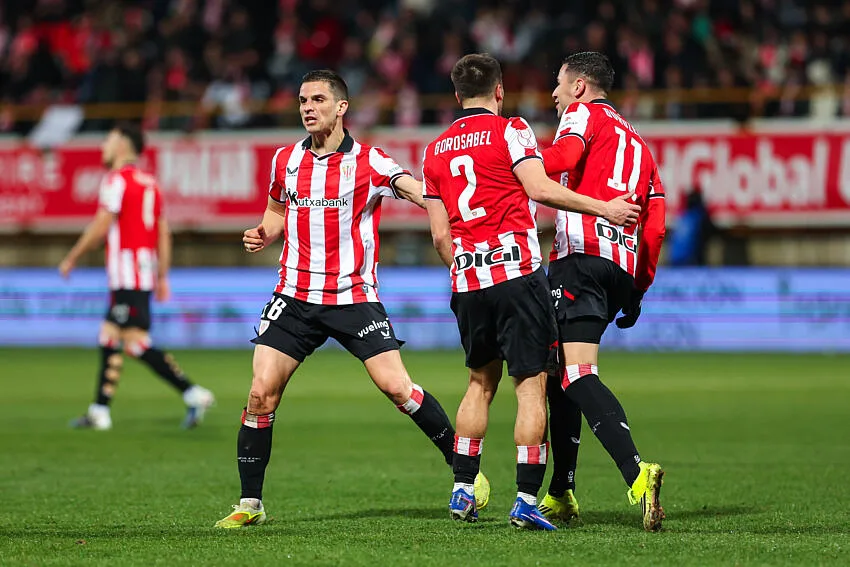 La composition probable de l’Athletic Bilbao : Simon – Lekue, Vivian, Paredes, Boiro – Galarreta, Rego – Gorosabel, Gomez (ou Sancet), Navarro – Guruzeta.