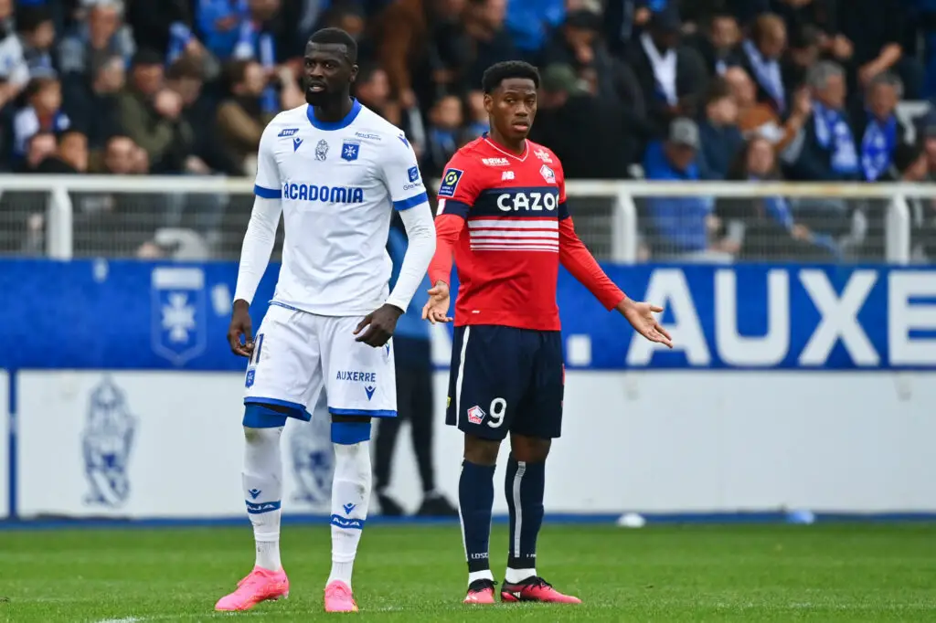 Mbaye NIANG (Auxerre) face à Jonathan DAVID (Lille) (Photo by Anthony Dibon/Icon Sport)