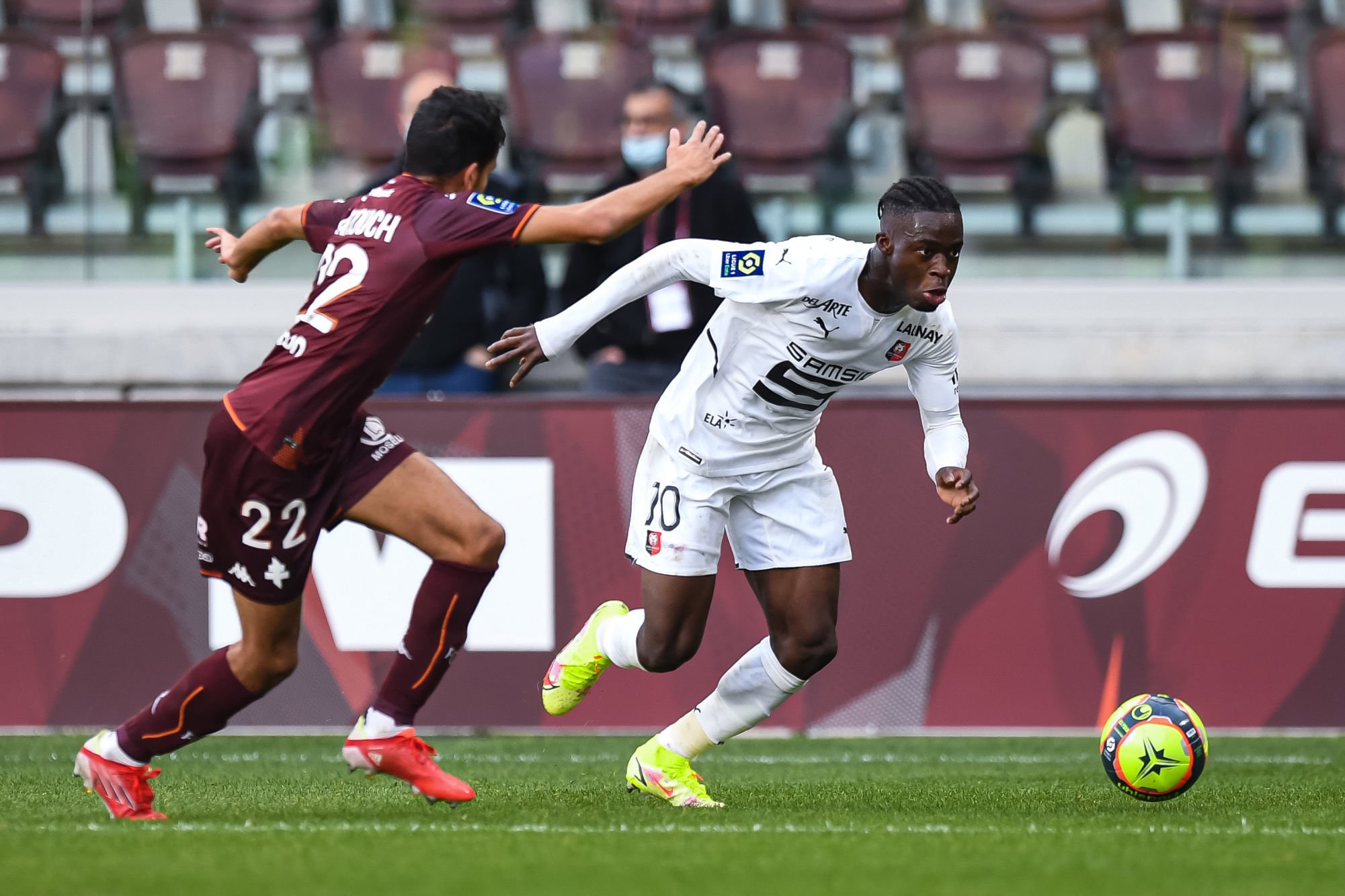 Auteur de quatre buts cette saison dont un le week-end dernier face à Metz dans la victoire de son équipe 3-0, Kamaldeen Sulemana impressionne. Du haut de ses 19 ans et fraîchement arrivé de Nordsjaelland au Danemark, le jeune ailier a rapidement pris ses marques dans l’effectif breton. « On a pris le temps de le faire murir, car il arrivait d’un championnat différent du nôtre », raconte Bruno Génésio.