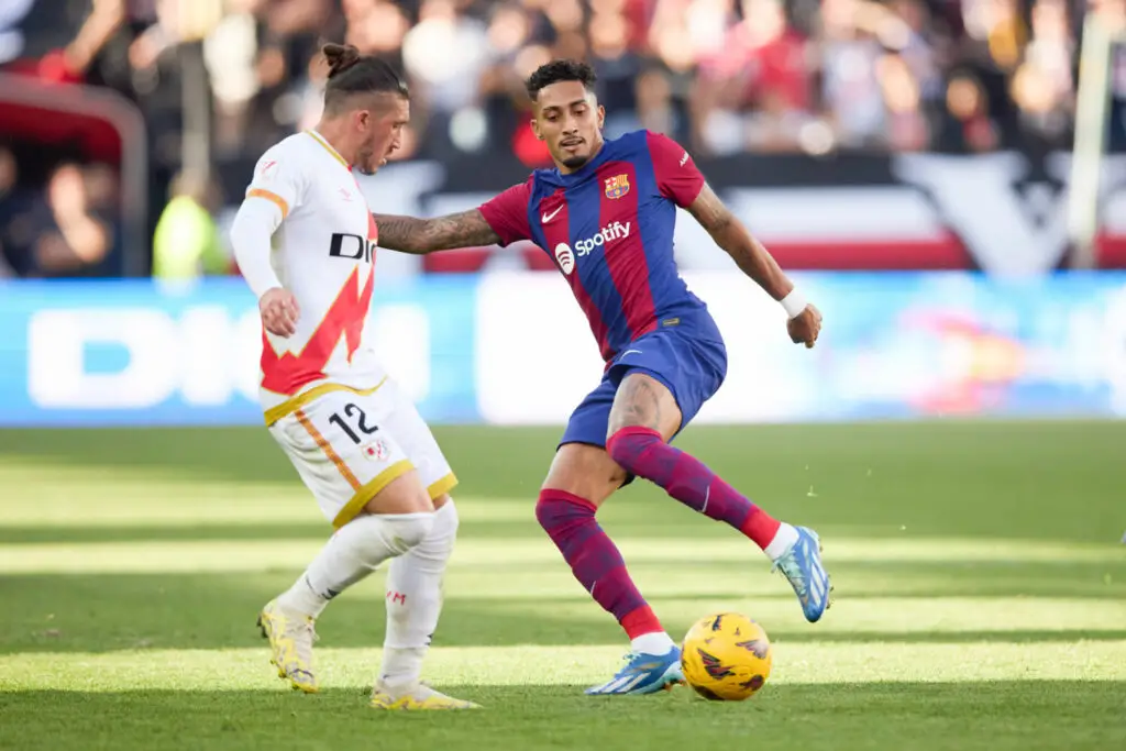 Selon les informations de Sport, le FC Barcelone considère comme prioritaire la vente de deux éléments à la fin de la saison. Deux éléments identifiés puisque le premier est Brésilien en la personne de Raphinha. Le joueur de 27 ans, qui a pourtant des statistiques intéressantes cette saison – 24 apparitions, 5 buts, 8 passes décisives -, pourrait plaire en Arabie saoudite, révèle le média, et la direction ne se priverait pas de l’argent de son transfert pour l’ancien sociétaire du Stade Rennais entre 2019 et 2020.