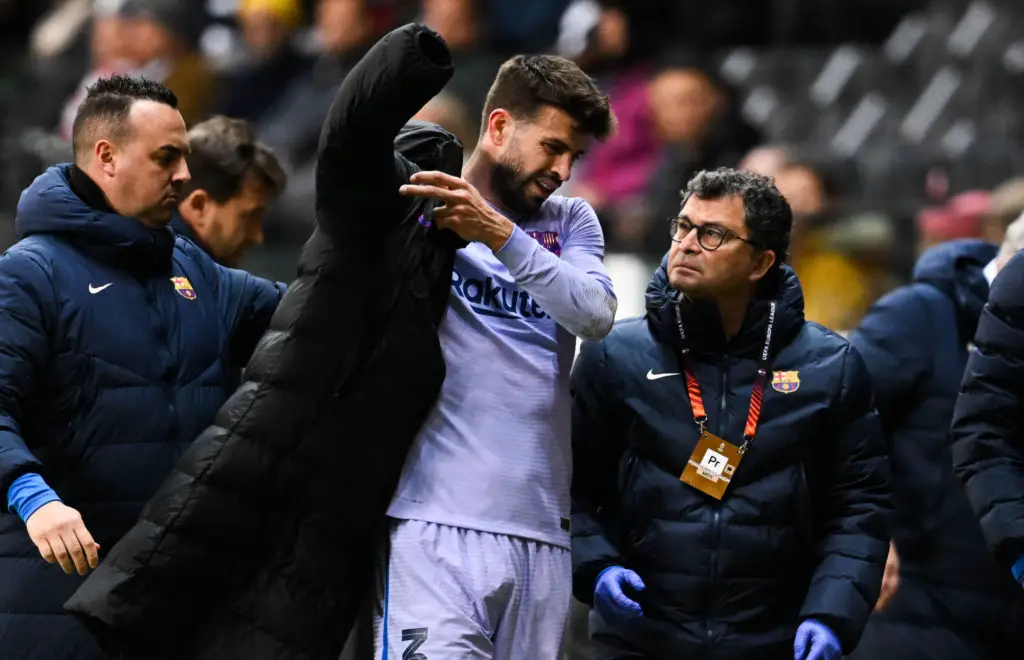 Remplacé prématurément par Clément Lenglet hier soir face à Francfort (1-1) en quart de finale aller de la Ligue Europa, Gerard Piqué souffre finalement d’une tendinopathie de l’adducteur de la jambe gauche. « Les examens réalisés sur le joueur ont confirmé une blessure à l’adducteur gauche », a indiqué le Barça dans un communiqué sans préciser la durée de son indisponibilité. En attendant de retrouver les terrains, le défenseur de 35 ans devrait céder sa place dans le onze à Clément Lenglet, en manque de temps de jeu depuis l’arrivée de Xavi sur le banc des Blaugrana.