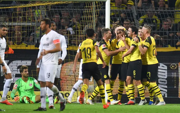 Victoire pour le Borussia Dortmund ce soir sur le score de 3-1 face à l’Eintracht Francfort. Les Marsupiaux prennent les commandes du championnat avec 3 victoires en 3 matchs.