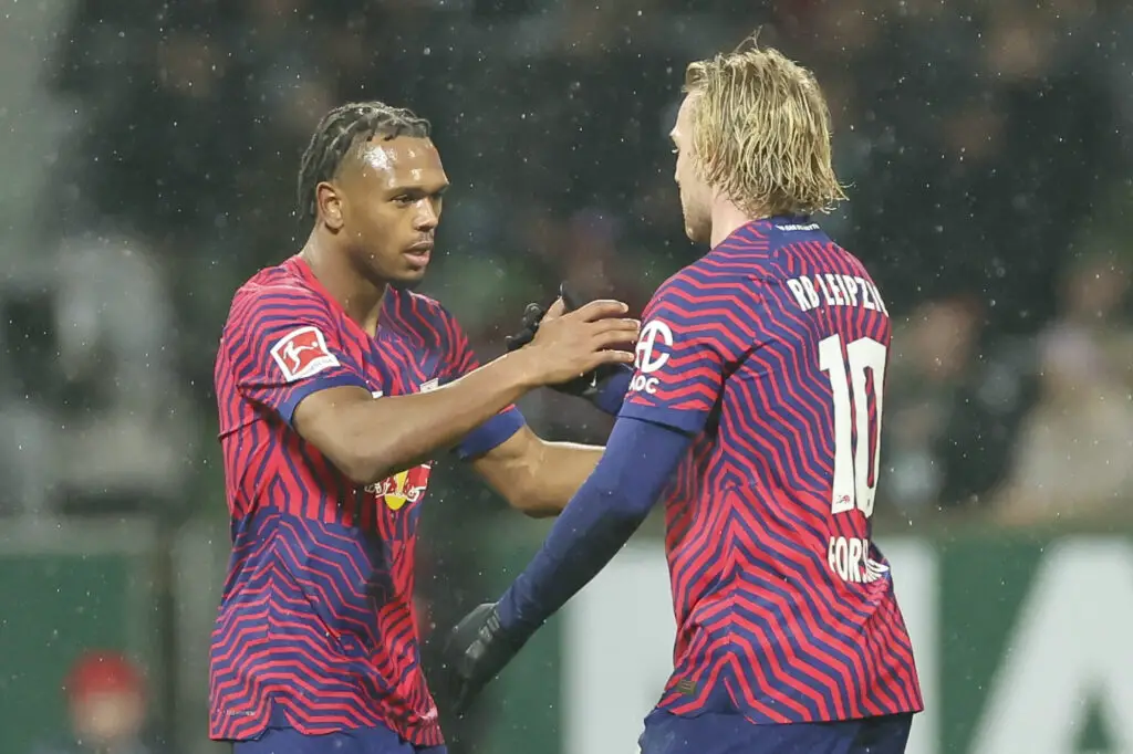 Lois Openda (RB Leipzig) und Emil Forsberg (RB Leipzig) geben sich die Hand, 1. Bundesliga, Werder Bremen vs RB Leipzig, WOHNINVEST Weserstadion am 19. December 2023 in Bremen, Deutschland. (Foto von Marco Steinbrenner/DeFodi Images) Lois Openda (RB Leipzig) und Emil Forsberg (RB Leipzig) shake hands, 1. Bundesliga, Werder Bremen vs RB Leipzig, WOHNINVEST Weserstadion, December 19, 2023 in Bremen, Germany. (Photo by Marco Steinbrenner/DeFodi Images) DFB / DFL REGULATIONS PROHIBIT ANY USE OF PHOTOGRAPHS AS IMAGE SEQUENCES AND/OR QUASI-VIDEO. - Photo by Icon sport