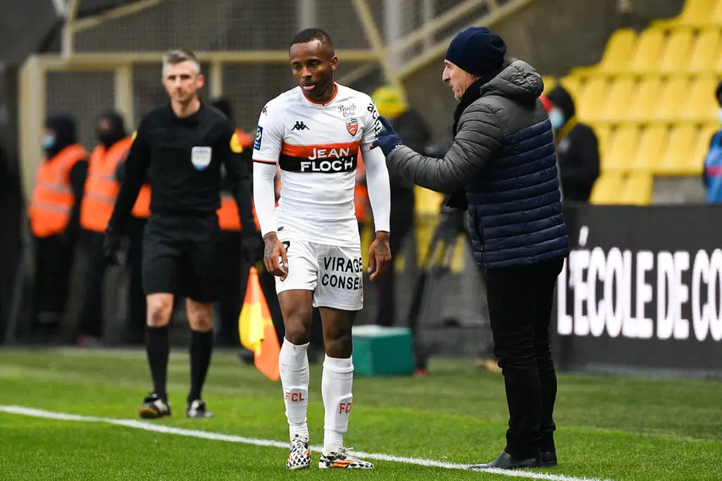 Stephane DIARRA et Christophe PELISSIER (entraineur Lorient fcl) le 23 janvier 2022 à Nantes, France. (Photo by Christophe Saidi/FEP/Icon Sport)