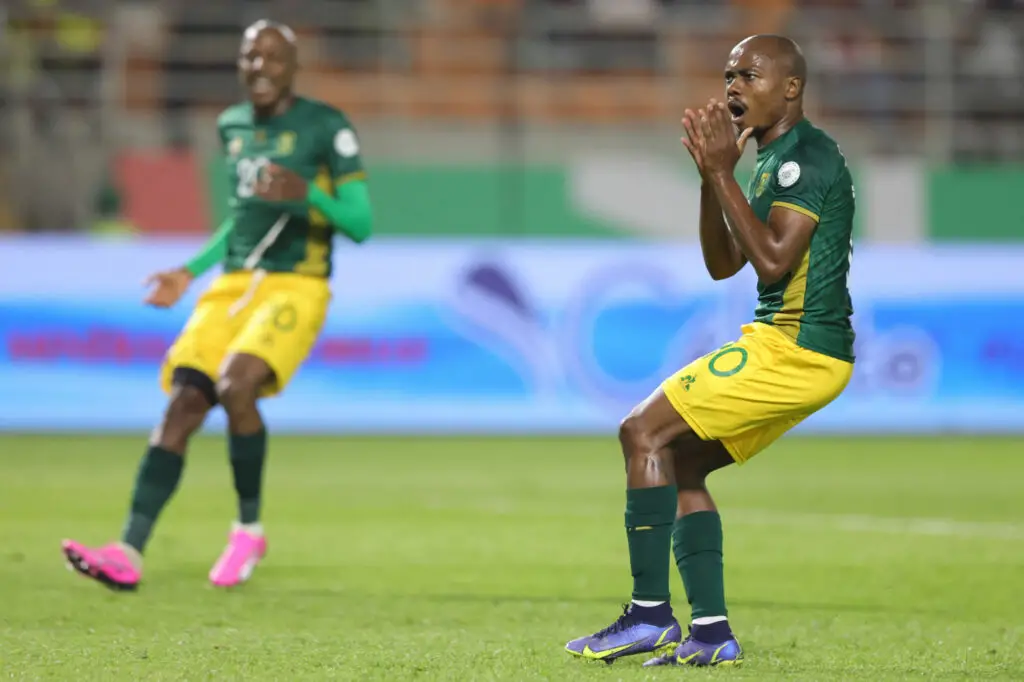 Percy Muzi Tau of South Africa reacts in disappointment after missed a penalty during the 2023 Africa Cup of Nations Finals match between Mali and South Africa at Amadou Gon Coulibaly Stadium in Korhogo on 16 January 2024 - Photo by Icon Sport