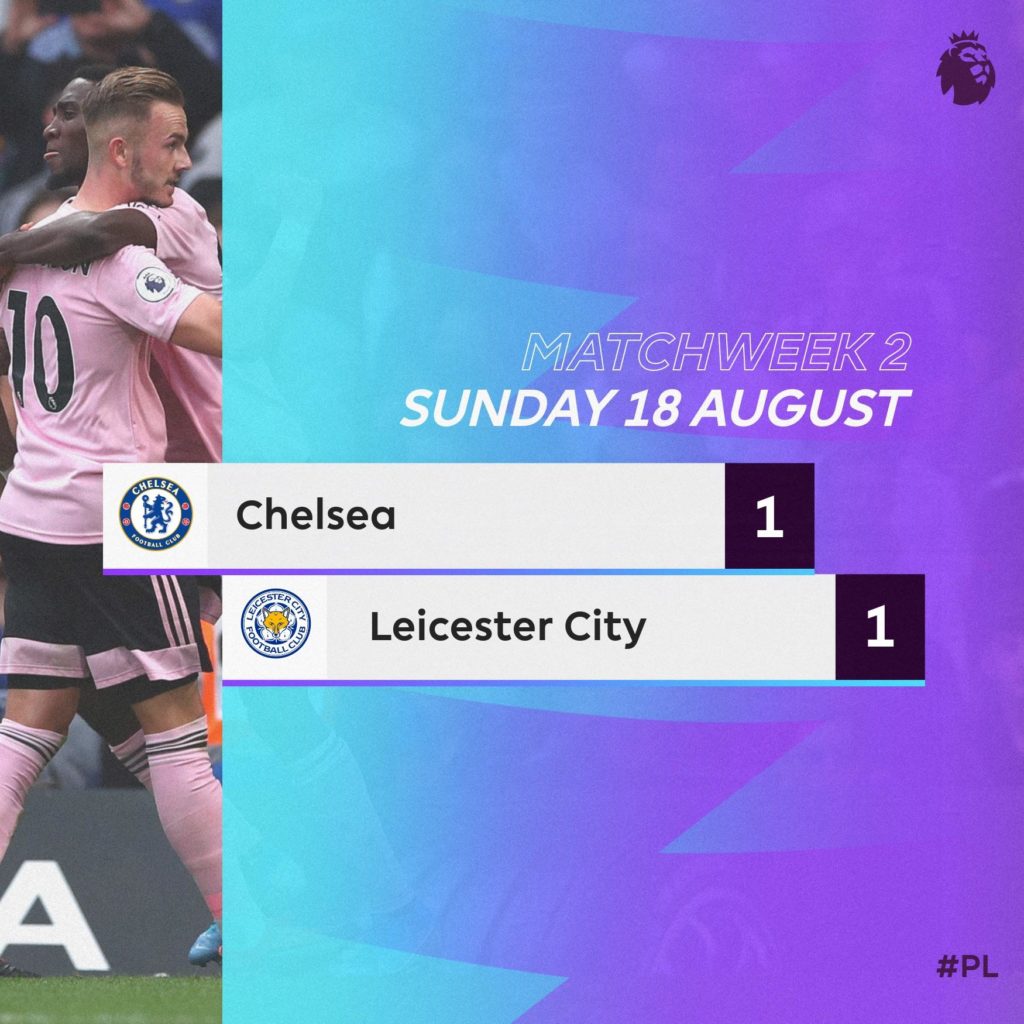Chelsea n’a pas réagi de sa déconvenue contre Manchester United. Ce dimanche, le club londonien a été tenu en échec par Leicester City à Stamford Bridge (1-1), à l’occasion de la 2e journée de Premier League.