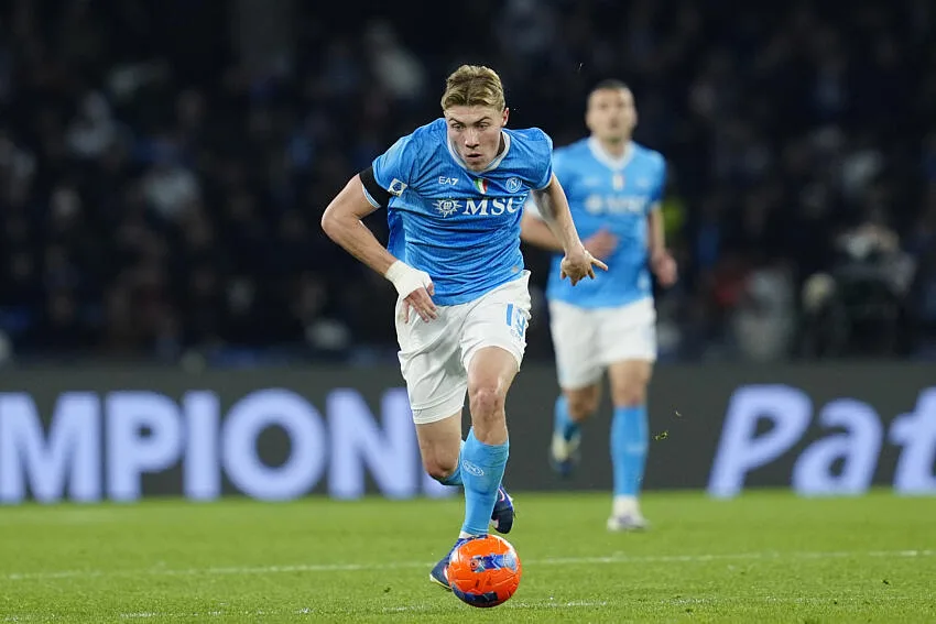 La composition probable pour Naples : Vanja Milinkovic-Savic — Sam Beukema, Juan Jesus, Alessandro Buongiorno, Giovanni Di Lorenzo — Antonio Vergara, Scott McTominay, Mathias Olivera, David Neres — Noa Lang, Rasmus Højlund.