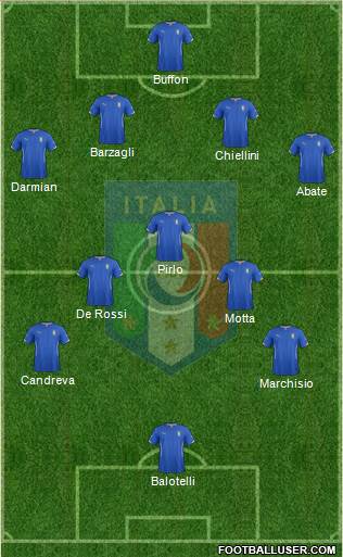 Prandelli a choisi de titulariser Thiago Motta en lieu et place de Marco Verratti dans l’entrejeu. À noter le retour de blessure de Gianluigi Buffon et la titularisation d’Ignazio Abate sur le côté gauche de la défense. Côté costaricien, on ne change pas une équipe qui gagne puisque Jorge Luis Pinto reconduit le même onze de départ que face à l’Uruguay (3-1). Bryan Ruiz et Joel Campbell sont donc titulaires à la pointe de l’attaque des Ticos.