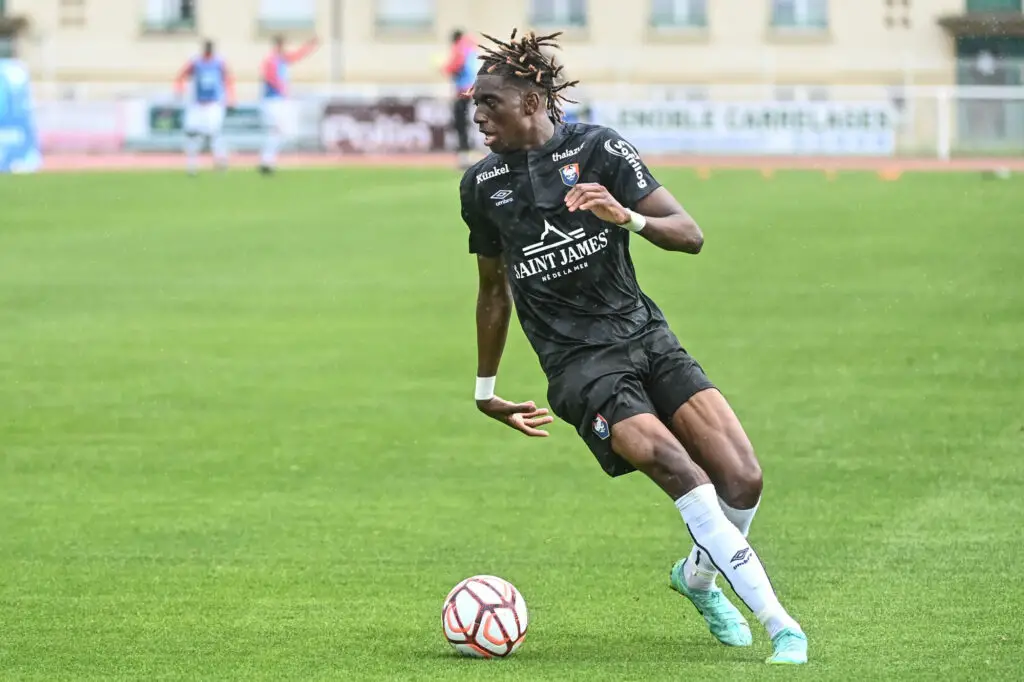 Kelian NSONA of Caen during the friendly match between Caen and Guingamp on July 7, 2021 in Avranches, France. (Photo by Anthony Dibon/Icon Sport)