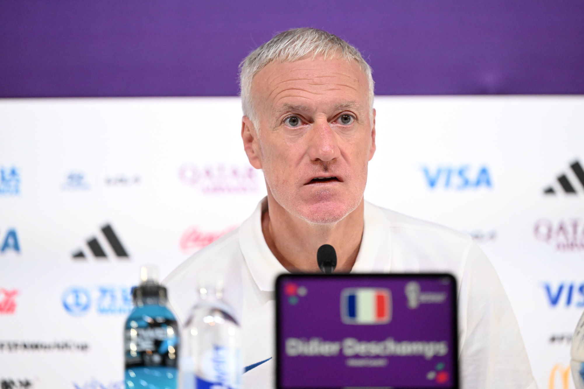 En conférence de presse, le coach des Bleus Didier Deschamps a défendu l’attaquant du PSG, Kylian Mbappé (23 ans).