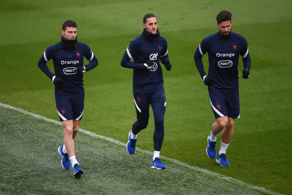 Lloris (cap) – Pavard, Varane, Kimpembe, L.Hernandez ou Digne – Mbappé, P. Pogba, N. Kante, Rabiot ou Coman – Griezmann, Giroud.