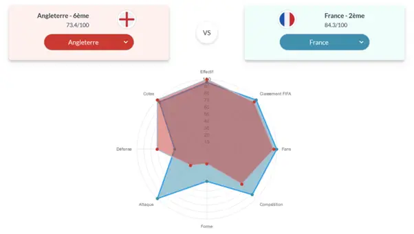 2. Choisissez une première équipe à gauche et sélectionnez la deuxième nation que vous souhaitez comparer.