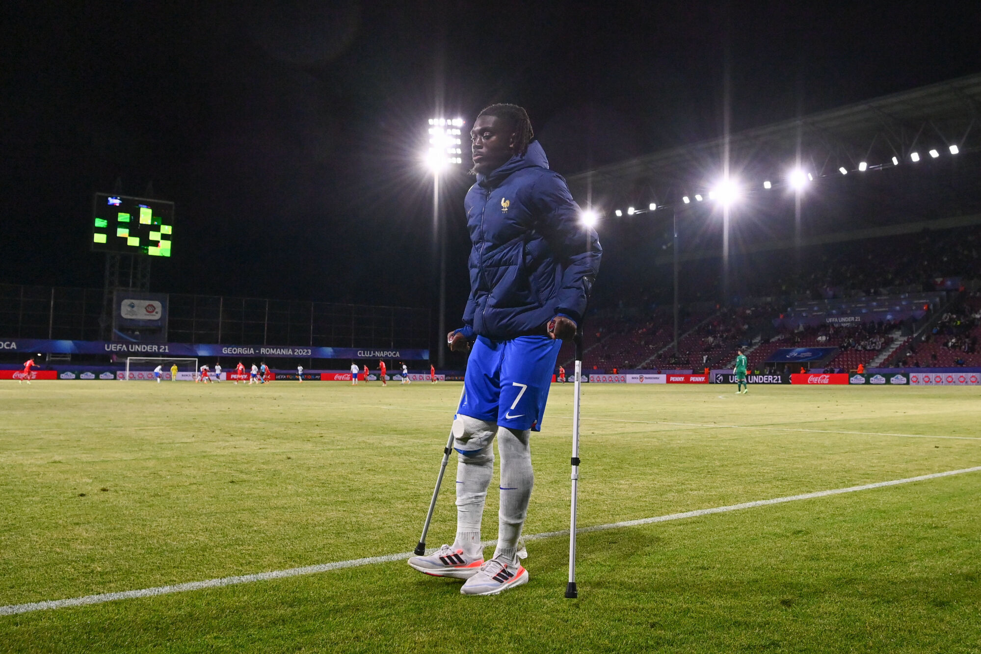 Manu Koné, le milieu de terrain de Mönchengladbach et de l’équipe de France espoirs, a été victime d’un choc lors du match contre la Suisse (4-1). Aujourd’hui, il a subi des examens à Cluj qui ont révélé de mauvaises nouvelles : il souffre d’une entorse du genou droit avec une blessure à la rotule suite à un choc avec un adversaire. En conséquence, il ne pourra pas participer au reste du tournoi. Après Michael Olisé, qui s’est blessé aux ischio-jambiers contre la Norvège (1-0), c’est le deuxième joueur de l’équipe de France espoirs à devoir quitter la compétition.
