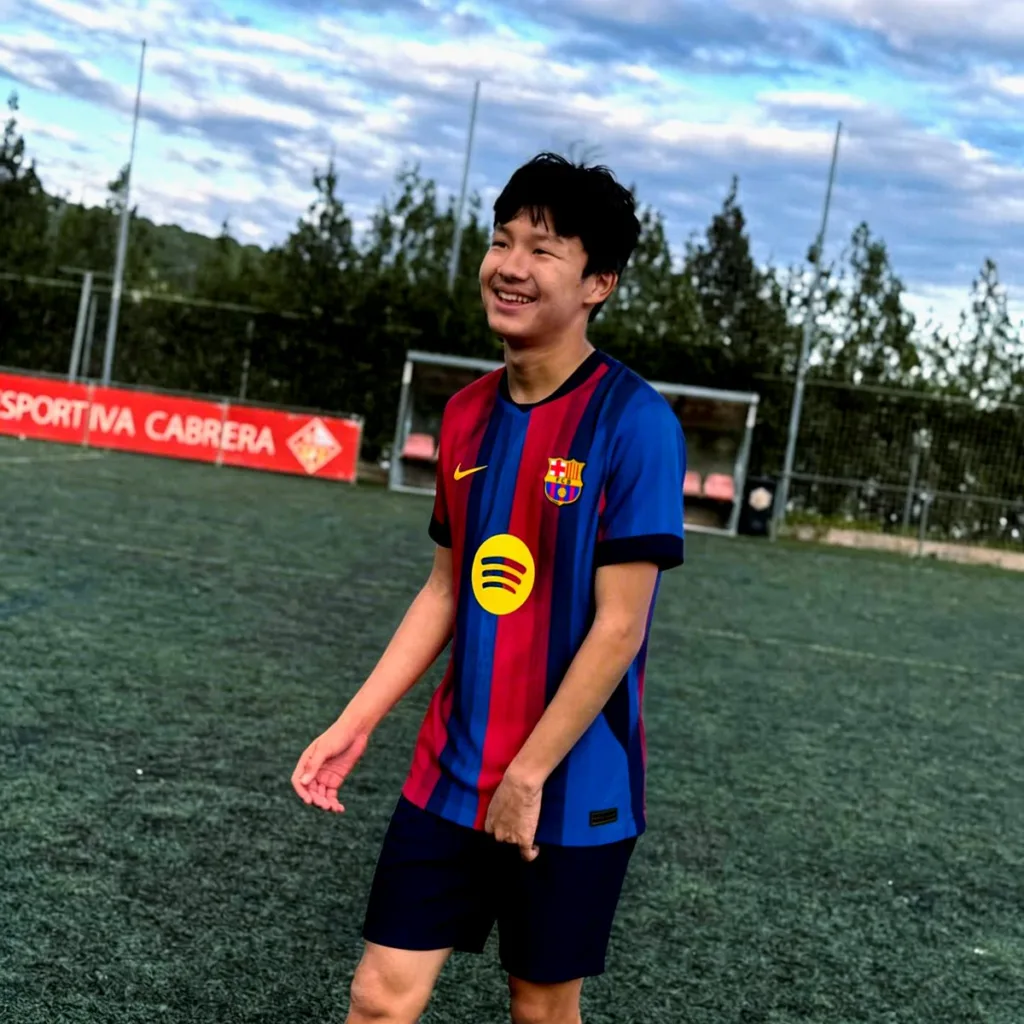C’est là que tout s’accélère. En 2025-2026, il claque 9 buts et 7 passes décisives en seulement 12 matchs avec l’équipe U15 — des chiffres qui font rapidement le tour des cellules de recrutement de la région. Les scouts du Barça, autorisés à l’observer lors de séances d’entraînement spéciales organisées en accord avec Sant Cugat, n’ont pas mis longtemps à se décider.