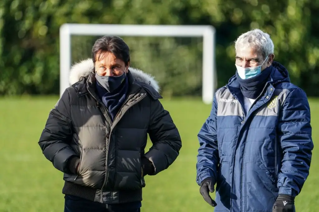 Voici les images du premier entraînement de Raymond Domenech, ancien sélectionneur de l’équipe de France lors de la grève à Knysna en 2010, avec le FC Nantes. Waldemar Kita, propriétaire du club, était lui aussi présent sur la pelouse du stade d’entraînement pour réaliser les présentations avec le groupe professionnel. Plusieurs supporters, présents à l’écart, ont diffusé une petite musique pour fêter l’arrivée de Raymond Domenech (A LIRE ICI)… La première conférence de presse de l’ère Domenech à Nantes est annoncée pour ce jeudi à 13h, à suivre en direct sur Sport.fr.