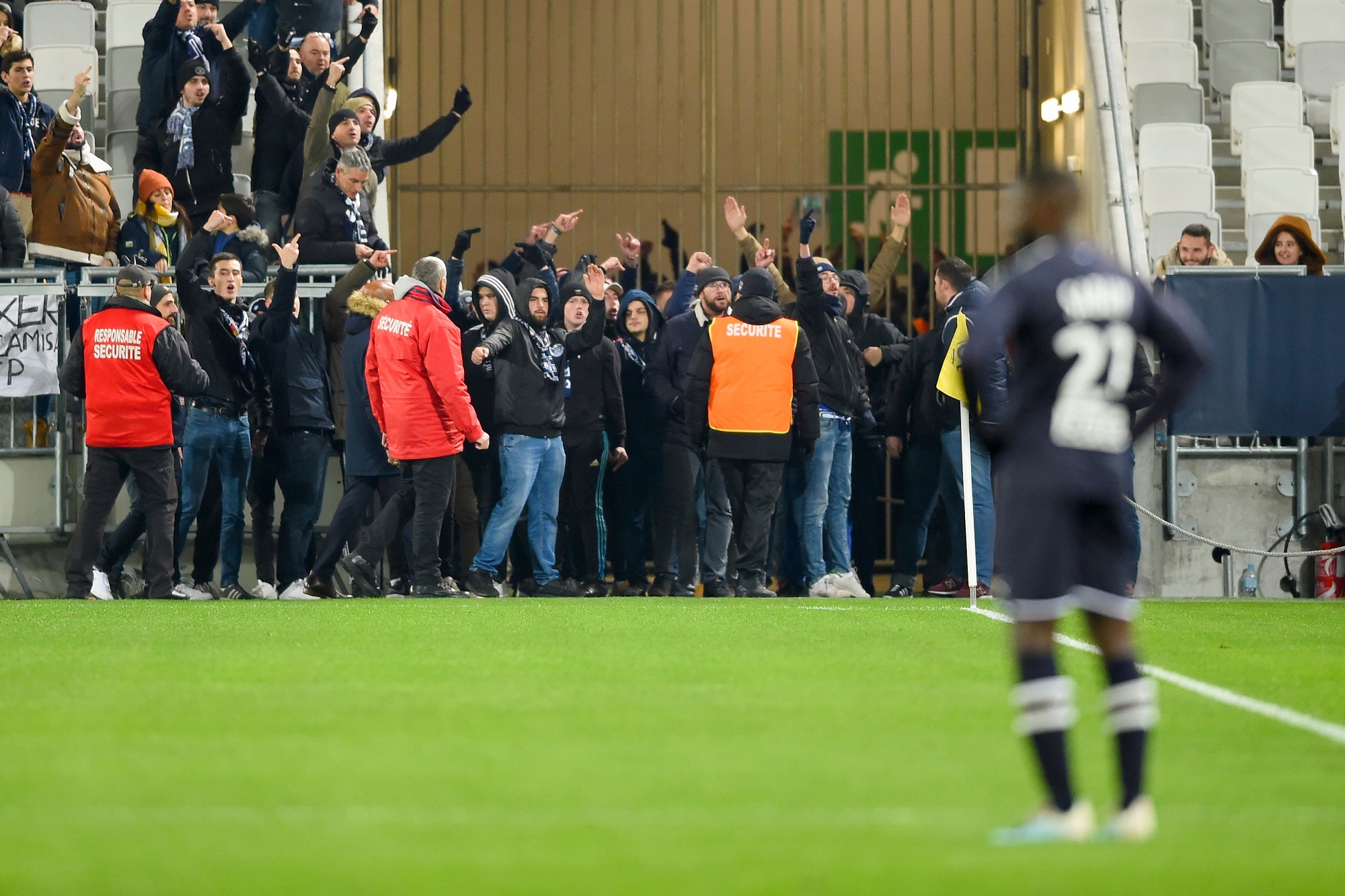 Le match opposant Bordeaux à Nîmes a été arrêté de longues minutes puisque des supporters Bordelais ont décidé de quitter la tribune et de gagner la pelouse. En cause, le refus du déploiement d’une banderole anti direction et Frédéric Longuépée. Le match a finalement repris suite à l’autorisation du déploiement de ladite banderole.