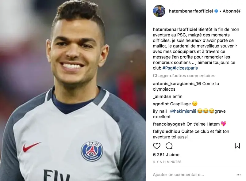 « Bientôt la fin de mon aventure au PSG, malgré des moments difficiles, je suis heureux d’avoir porté ce maillot, je garderai de merveilleux souvenir avec mes coéquipiers et à travers ce message j’en profite pour remercier les nombreux soutiens .. j’aimerai toujours ce club », a-t-il indiqué sur Instagram.