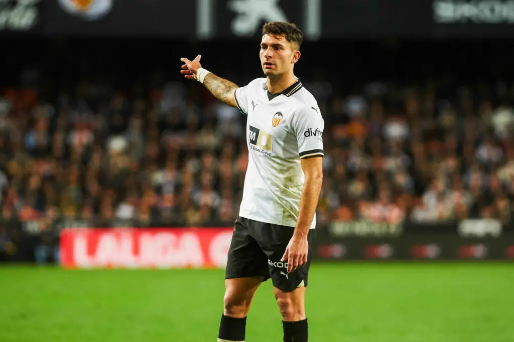 Hugo Duro of FC Valencia looks on during the La Liga EA Sports - Matchday 25 match between FC Valencia and FC Sevilla at Estadio de Mestalla on February 17, 2024 in Valencia, Spain. - Photo by Icon Sport