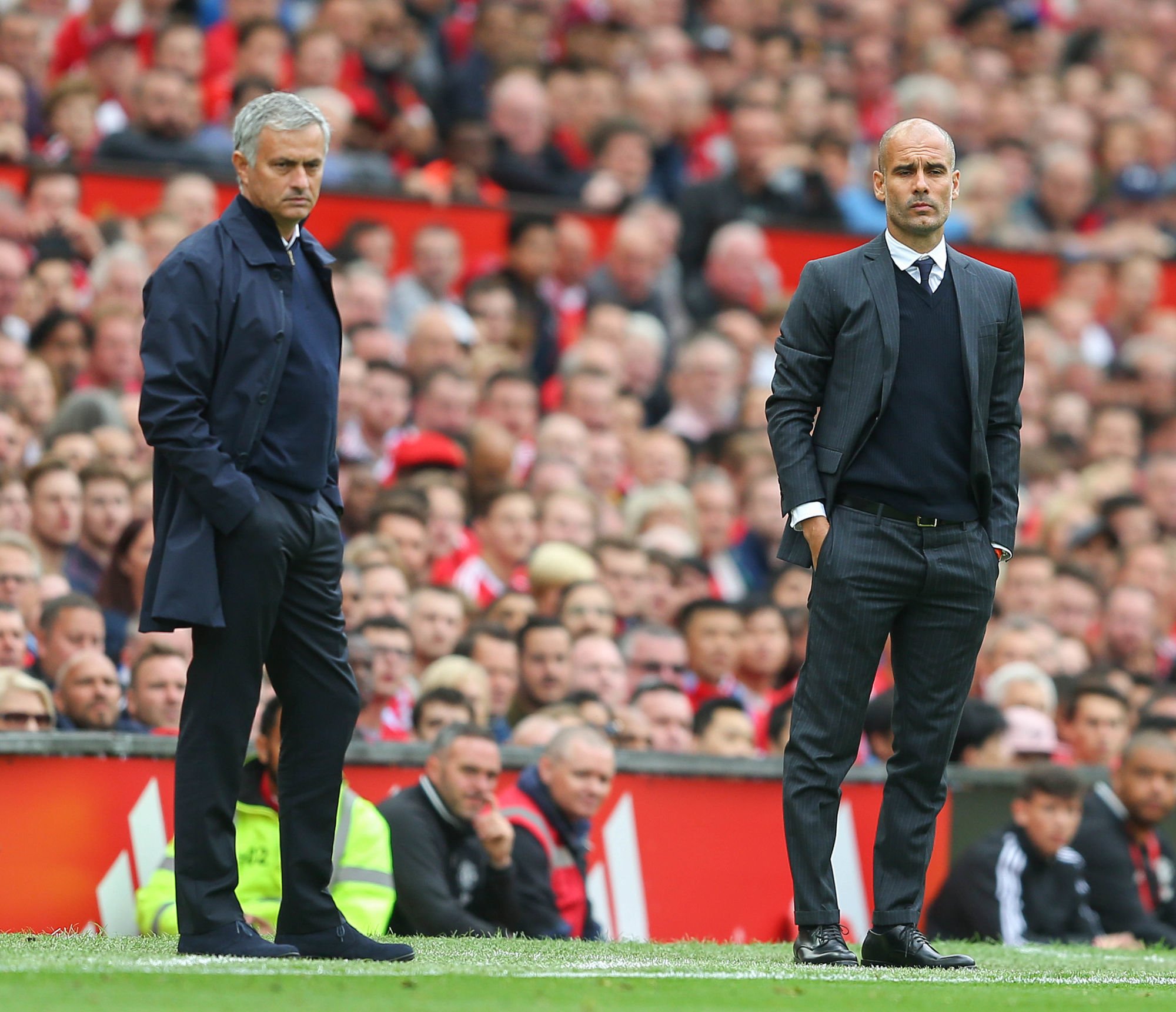 Duel au sommet ce samedi en Premier League. Pep Gardiola contre José Mourinho. Deux philosophies de jeu que tout oppose. D’un côté, l’un est partisan de la possession, d’un jeu rapide tourné constamment vers l’avant : le fameux tiki-taka, tandis que l’autre prône la rigueur défensive, l’adaptation à l’adversaire et l’efficacité. Rivaux de toujours, les deux techniciens ont commencé à s’affronter en Liga lorsque Pep était à la tête du Barça et José coach du Real Madrid. Quelques années et plusieurs péripéties européennes plus tard, ils se retrouvent en Angleterre sur les pelouses de Premier League.
