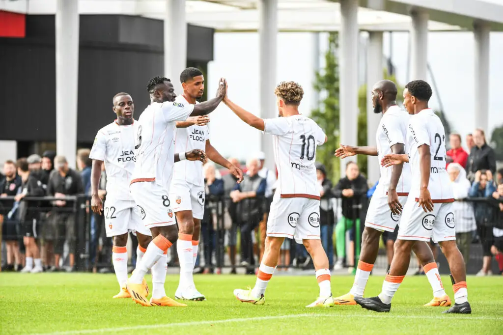 Elie Junior KROUPI of Lorient during the friendly match between EA Guingamp and FC Lorient on July 22, 2023 in Guingamp, France. (Photo by Daniel Derajinski/Icon Sport)