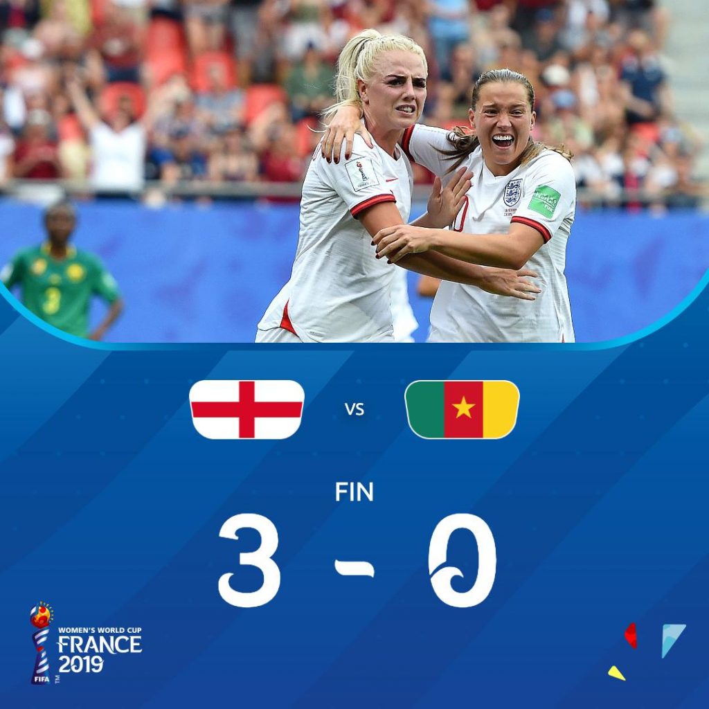 L’Angleterre a dominé ce dimanche le Cameroun (3-0), au stade du Hainaut de Valenciennes, dans le cadre des huitièmes de finale de la Coupe du monde féminine.