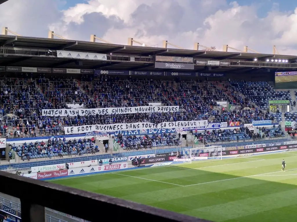 À Strasbourg ce dimanche lors de la réception de Lyon dans le cadre de la 7ème journée de Ligue 1, les ultras strasbourgeois ont déployé une banderole destinée à Mediapro… « Match à 13h pour des Chinois mauvais payeurs, le foot business dans toute sa splendeur ! » ont-il écrit.